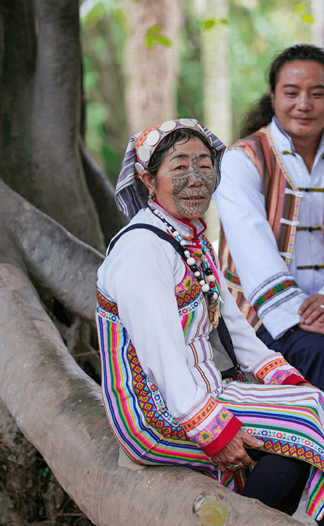 彝族在云南境內(nèi)約471萬人,是省內(nèi)人口最多、分布最廣的少數(shù)民族,主要聚居在金沙江、元江流域和哀牢山、無量山腹地。彝族是一個(gè)能歌善舞的民族,民間打歌、跳樂之風(fēng)盛行,大三弦、跌腳舞久負(fù)盛名。火把節(jié)是彝族最具特色的民族節(jié)日。彝族村占地50余畝,三虎浮雕墻與虎頭內(nèi)祖師形象表現(xiàn)了彝族虎鷹文化。太陽歷廣場(chǎng)圖騰柱上有太陽、虎、火和八卦圖形象,周圍環(huán)繞著10個(gè)朝向不同的月球造型,外圓周有12生肖石雕。依山而建的“...